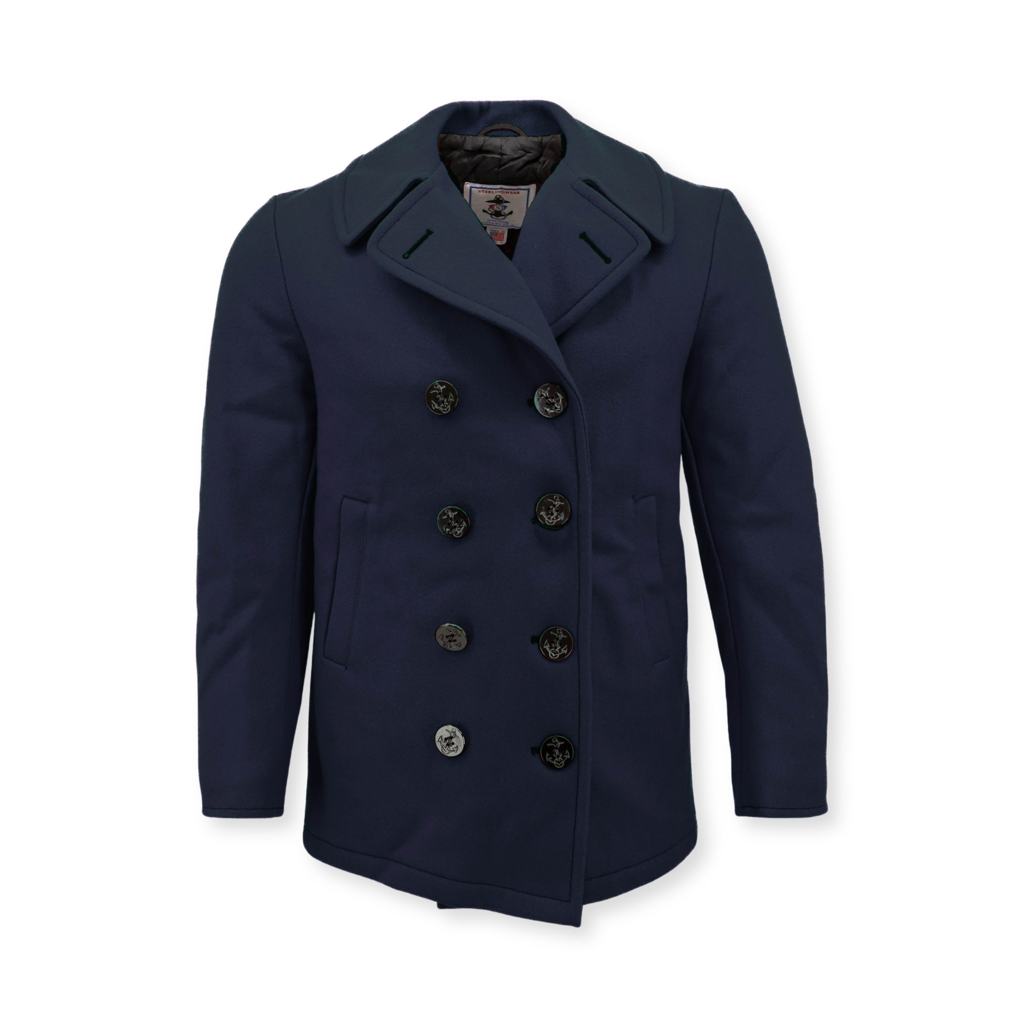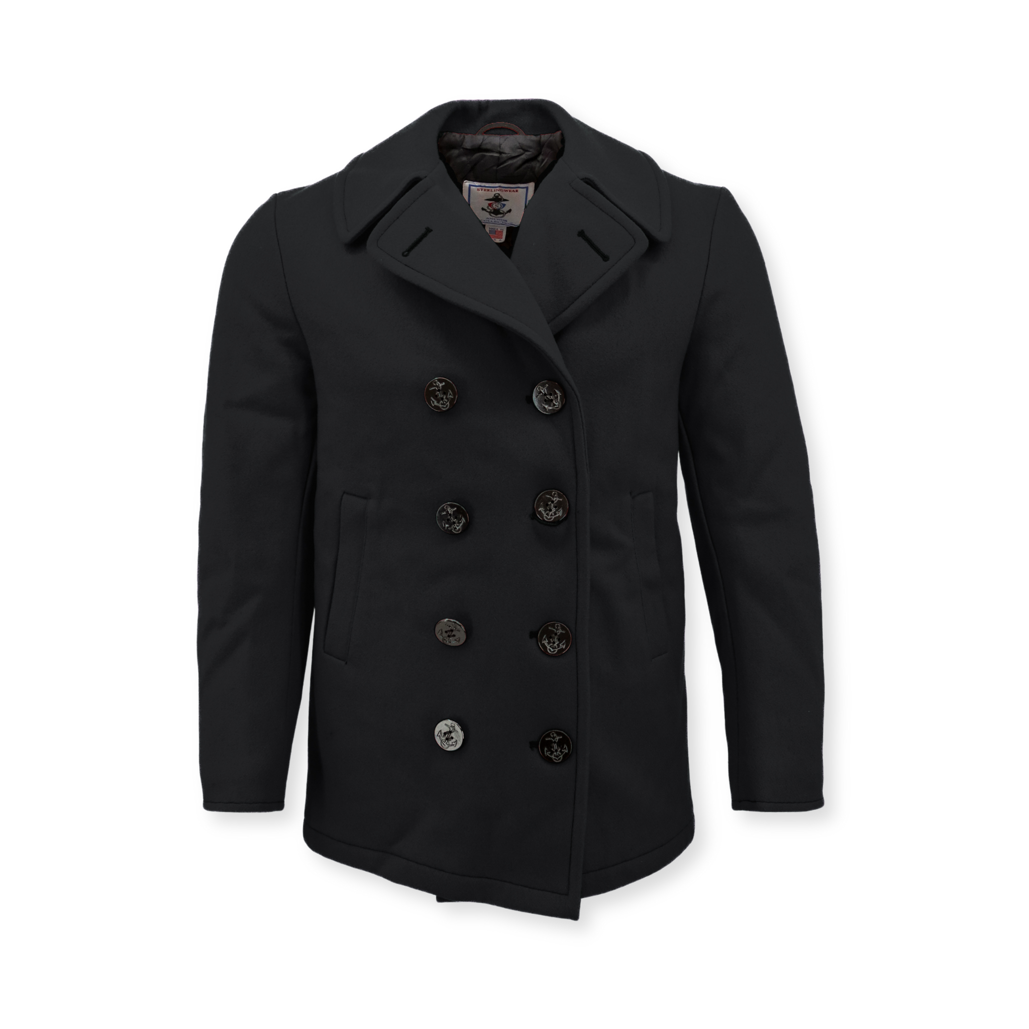 • Double-breasted design with anchor-style buttons